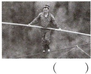 4. 如图所示,杂技演员两只脚都站在直径为2cm的钢丝上,脚与钢丝平行. 估算他的脚对钢丝的压强约为 ( )