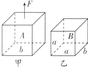 5.(2024·苏州工业园区二模)均匀实心正方体A重为50 N,边长$b = 1$ m,对它施加10 N向上的拉力F(如图甲所示),此时A对水平地面的压强$p_A$为__________Pa. 撤去力F后将A沿竖直和水平方向各切去一部分(如图乙所示),使剩余部分为一长方体B(其棱长$b>a$,b等于A的边长),此时B对地面的压强为$p_B$,已知$p_B = p_A$,则B对地面的压力为__________ N.