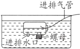 竖直向上 自身重力 $\frac{\rho_{水}\rho_{铁}V}{2\rho_{铁} - 2\rho_{水}}$ 解析:潜水艇在水中受到的浮力是水对潜水艇的作用,它的方向是竖直向上;潜水艇通过改变自身重力来实现浮与沉,因此需要选择质量合适的螺母作为配重,潜水艇恰能在水中悬浮时,受到重力与浮力大小相等,潜水艇重力由两部分组成,塑料瓶中水的重力+螺母的重力,故$G = G_{水} + G_{铁} = \frac{1}{2}\rho_{水}Vg + \rho_{铁}V_{铁}g$,潜水艇受到的浮力$F_{浮} = \rho_{水}g(V + V_{铁})$,$G = F_{浮}$,联立可得$V_{铁} = \frac{\rho_{水}V}{2\rho_{铁} - 2\rho_{水}}$,故螺母的质量为$m = \rho_{铁}V_{铁} = \frac{\rho_{水}\rho_{铁}V}{2\rho_{铁} - 2\rho_{水}}$。