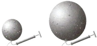 6. 回归教材 模型 宇宙在膨胀,我们可以用如图的实验来理解这一事实:在一只气球上黏一些小金属粒,这些小金属粒可看成是宇宙中的________,对气球打气,当气球膨胀时,任意两个金属粒间的距离都在________,这里主要运用的一种思维方法是________(填“等效法”“类比法”或“转换法”).