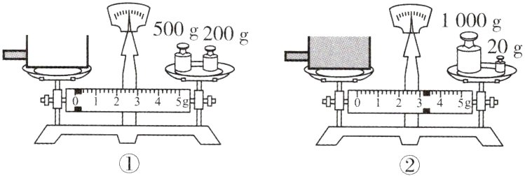 12.(2023·无锡中考)要配制90 mL、密度为1.1 $\text{g/cm}^{3}$的盐水,器材有:托盘天平(砝码有100 g、50 g、10 g、5 g各1个,20 g 2个)、水(密度为1 $\text{g/cm}^{3}$)、盐、烧杯等. 水加入盐后体积变化忽略不计.