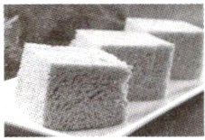 4. 如图所示,“冻豆腐”是一种传统豆制品,具有孔隙多、弹性好、营养丰富、味道鲜美等特点.其具体做法是将鲜豆腐冰冻,然后化冻,让豆腐中的水分流出,形成密布的孔洞.整个过程中豆腐的外形不变(即总体积不变),实心部分的体积在冰冻时就已确定.现有800 g鲜豆腐,其体积为600 cm³,将其制成冻豆腐(鲜豆腐中所含水的体积占总体积的60%,$\rho_{冰}=0.9\times10^{3}kg/m^{3}$).求: