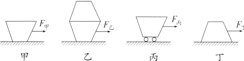 6. 如图所示,有两个相同的梯形物体,它们在力的作用下,以下列四种方式沿相同的水平面运动,下列对不同情况下物体所受摩擦力的比较,正确的是( )