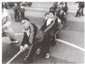 6. 如图,这是某校的甲、乙两队学生正在进行一场拔河比赛的情景。甲队正在拉动乙队朝自己这边运动,甲队最终获胜。有同学认为甲队获胜是因为甲队施加的拉力大于乙队,你同意这个观点吗?________,你的理由是__________。