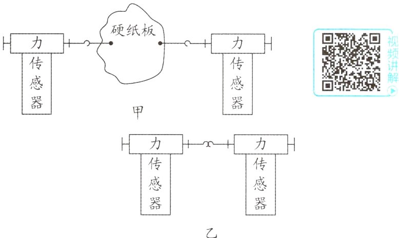 (1)由图甲可知,此时测力计的两个力都作用在硬纸板上,两个测力计的拉力不是一对相互作用力,而乙图中左边力传感器和右边力传感器相互作用,故选乙方案进行实验.