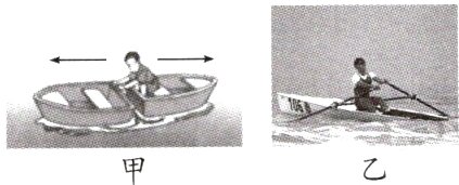 12. 如图甲所示,小宇坐在小船上用力推另一条小船,他想将另一条船推开而自己坐的小船不动,他的愿望不能实现,这种现象可以用________________来解释。如图乙所示是小明参加赛艇比赛时的照片,他用桨向后划水,赛艇会向前运动。如要使赛艇逆时针旋转,小明应该在赛艇的________(填“左”或“右”)侧向外划水。
