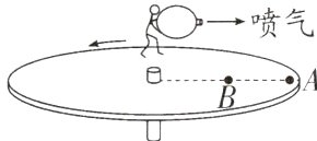 11. 如图所示,人手持大气球站在转盘上,松开气嘴,让气球沿垂直转盘半径方向喷气,由于力的作用是________的,人与转盘开始一起反向转动。在A、B两点中,人站在A点进行上述实验,更容易转动,说明力的作用效果与力的________有关。使人与转盘共同转动的力的施力物体是________________(填“气球”或“气球喷出的气体”)。