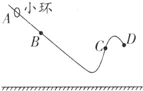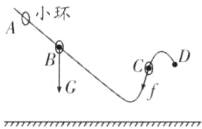 5. 如图,小环穿在固定的曲杆上,从A点静止释放后沿曲杆运动到达D点.画出小环经过B点时所受重力和经过C点时所受摩擦力的示意图.