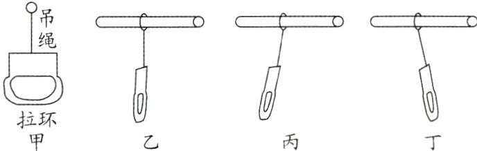 C. 丁图中,拉环此时所受重力与吊绳对它的拉力是一对平衡力