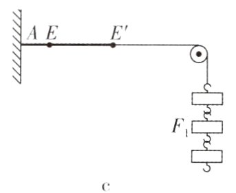 13. 李老师利用橡皮筋、定滑轮、钩码、小绳子和同学们一起研究同一直线上二力的合成,实验装置如图所示:
