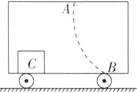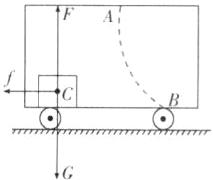 12. 如图是一辆汽车沿平直公路向右行驶,车顶A处滴落的水滴最终落在B处.车厢地板上的木箱C始终相对车厢静止.请画出木箱C的受力示意图.