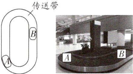 8. 机场利用传送带传送行李,行李箱随水平传送带匀速运动且不打滑.当行李箱A、B运动到如图所示位置时,下列说法正确的是 ( )