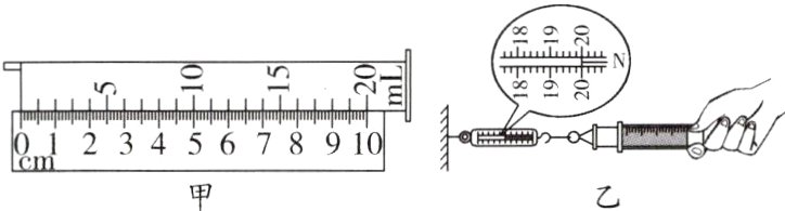 ④取下注射器,并用刻度尺测量其侧壁上有刻度部分的长度为10 cm.