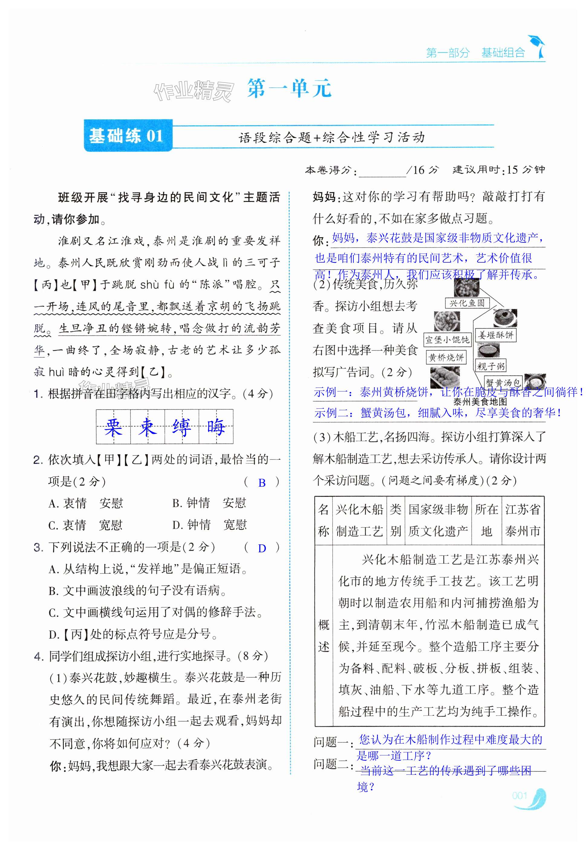注:目前有些书本章节名称可能整理的还不是很完善,但都是按照顺序排列的,请同学们按照顺序仔细查找。练习册 2025年学霸组合训练八年级语文下册人教版泰州专版 答案主要是用来给同学们做完题方便对答案用的,请勿直接抄袭。