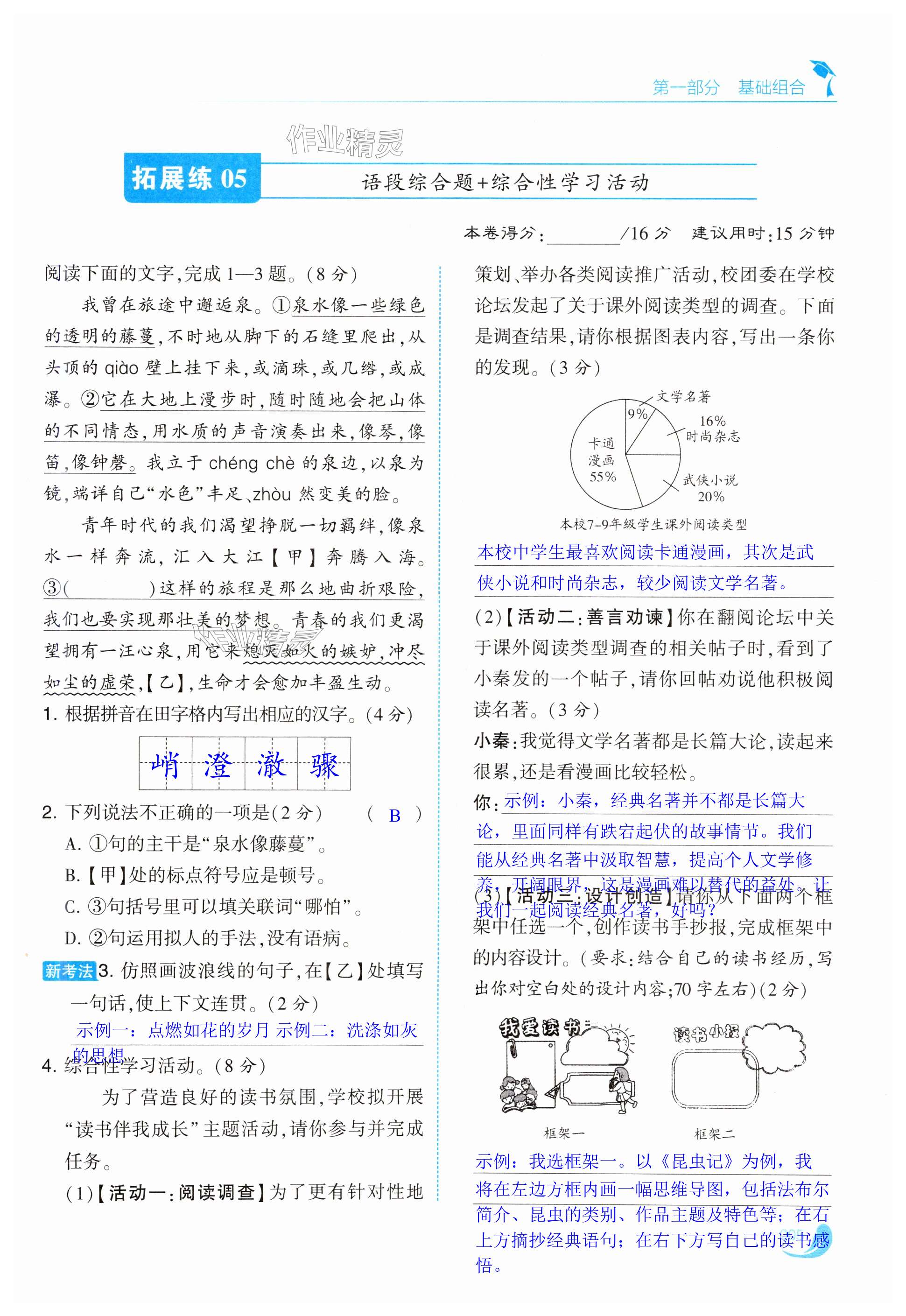 注:目前有些书本章节名称可能整理的还不是很完善,但都是按照顺序排列的,请同学们按照顺序仔细查找。练习册 2025年学霸组合训练八年级语文下册人教版泰州专版 答案主要是用来给同学们做完题方便对答案用的,请勿直接抄袭。