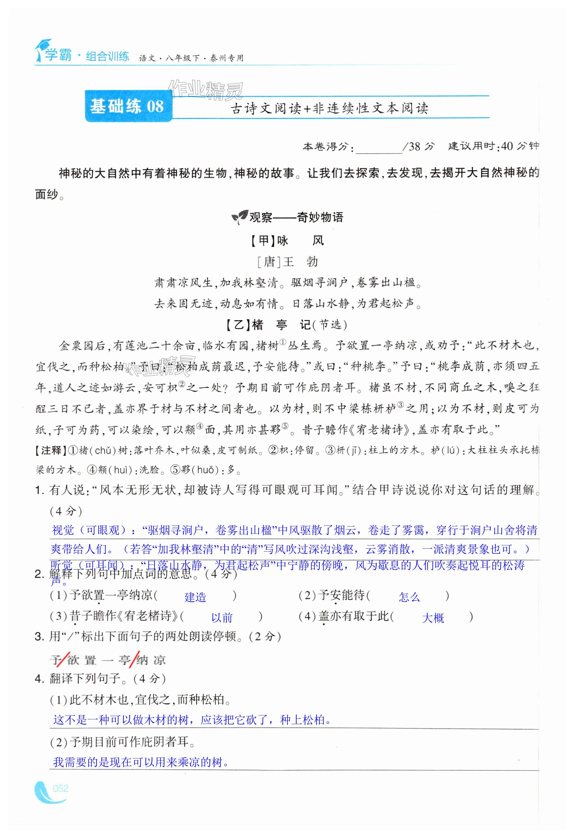 注:目前有些书本章节名称可能整理的还不是很完善,但都是按照顺序排列的,请同学们按照顺序仔细查找。练习册 2025年学霸组合训练八年级语文下册人教版泰州专版 答案主要是用来给同学们做完题方便对答案用的,请勿直接抄袭。