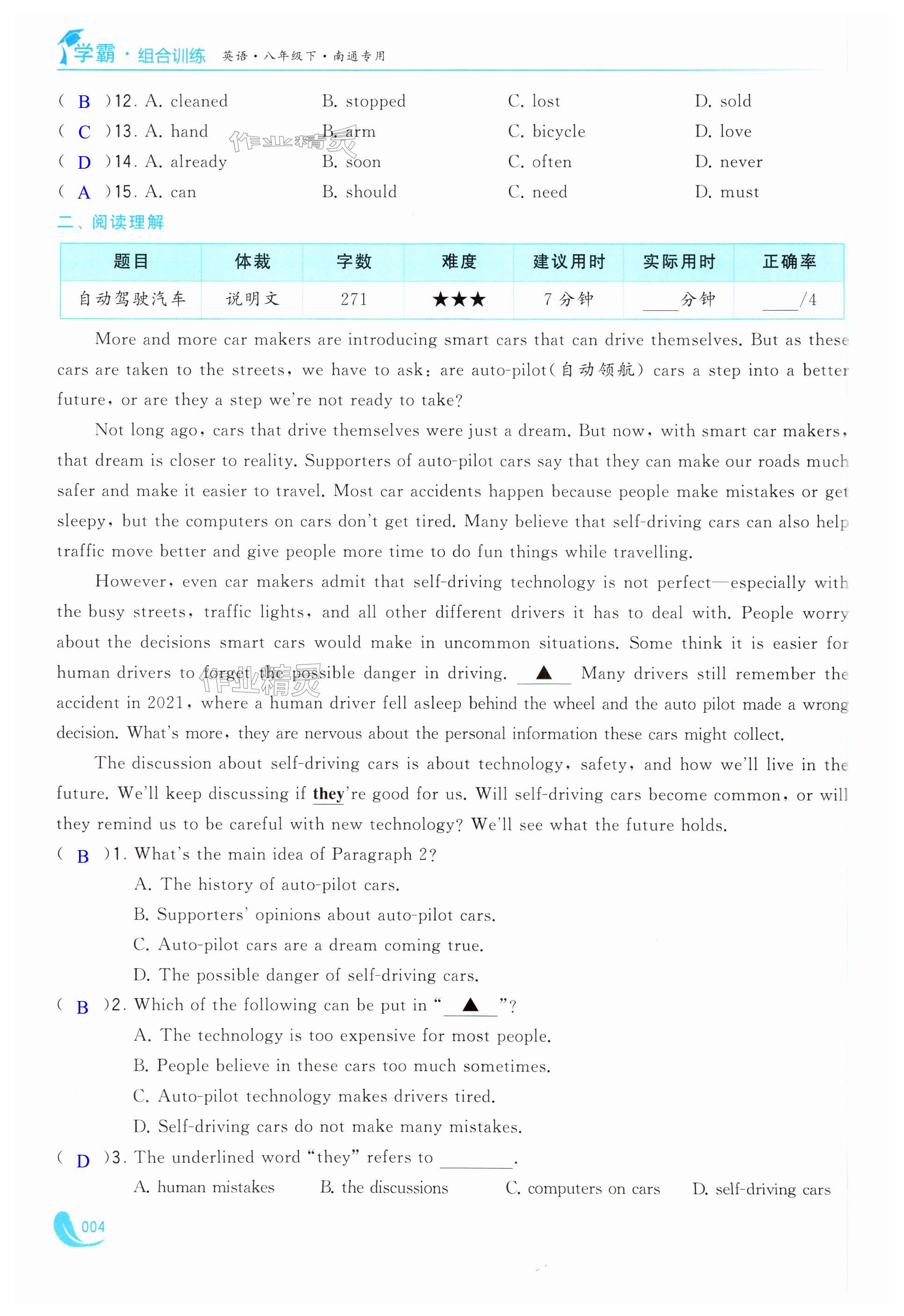 注:目前有些书本章节名称可能整理的还不是很完善,但都是按照顺序排列的,请同学们按照顺序仔细查找。练习册 2025年学霸组合训练八年级英语下册译林版南通专版 答案主要是用来给同学们做完题方便对答案用的,请勿直接抄袭。