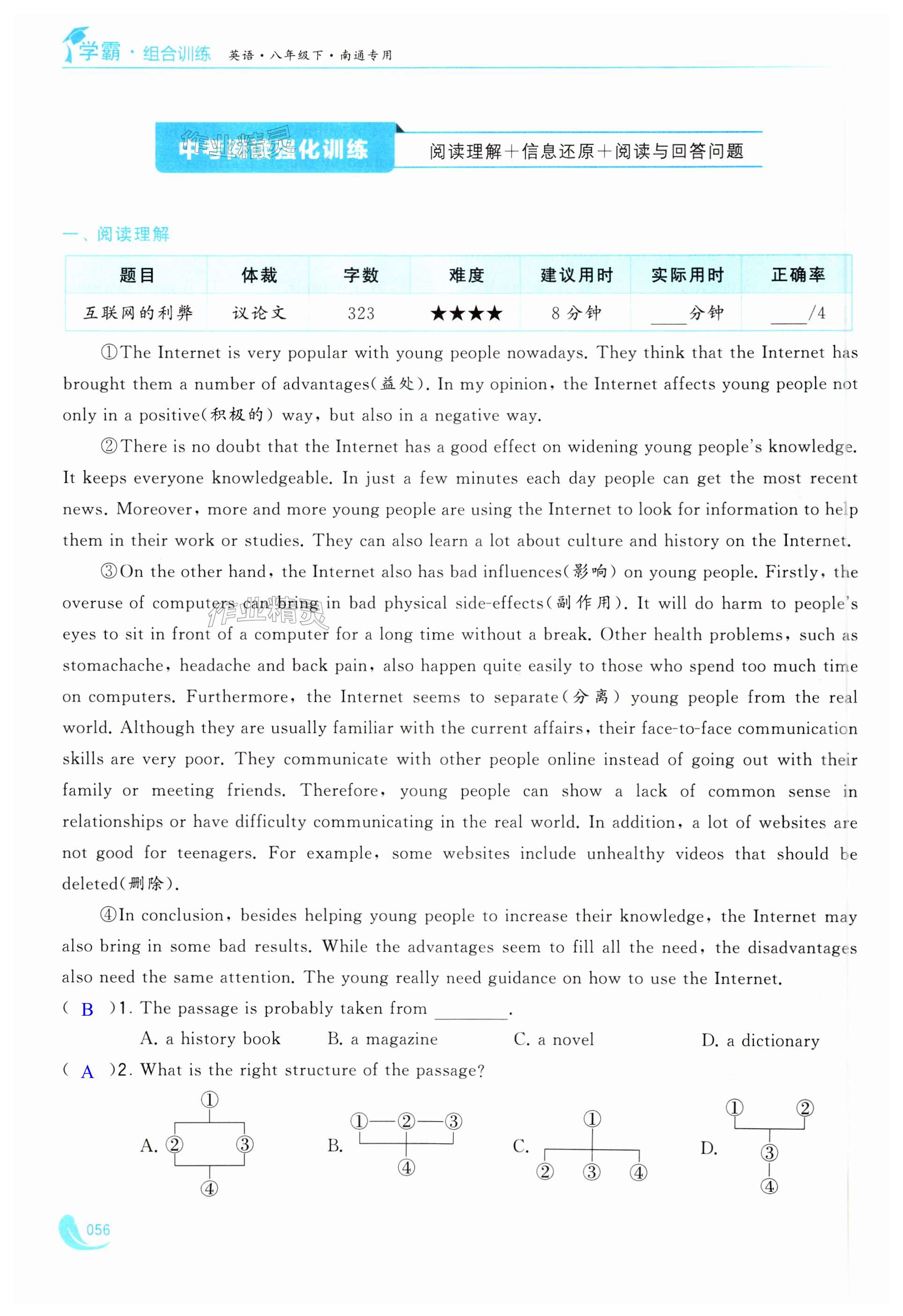 注:目前有些书本章节名称可能整理的还不是很完善,但都是按照顺序排列的,请同学们按照顺序仔细查找。练习册 2025年学霸组合训练八年级英语下册译林版南通专版 答案主要是用来给同学们做完题方便对答案用的,请勿直接抄袭。
