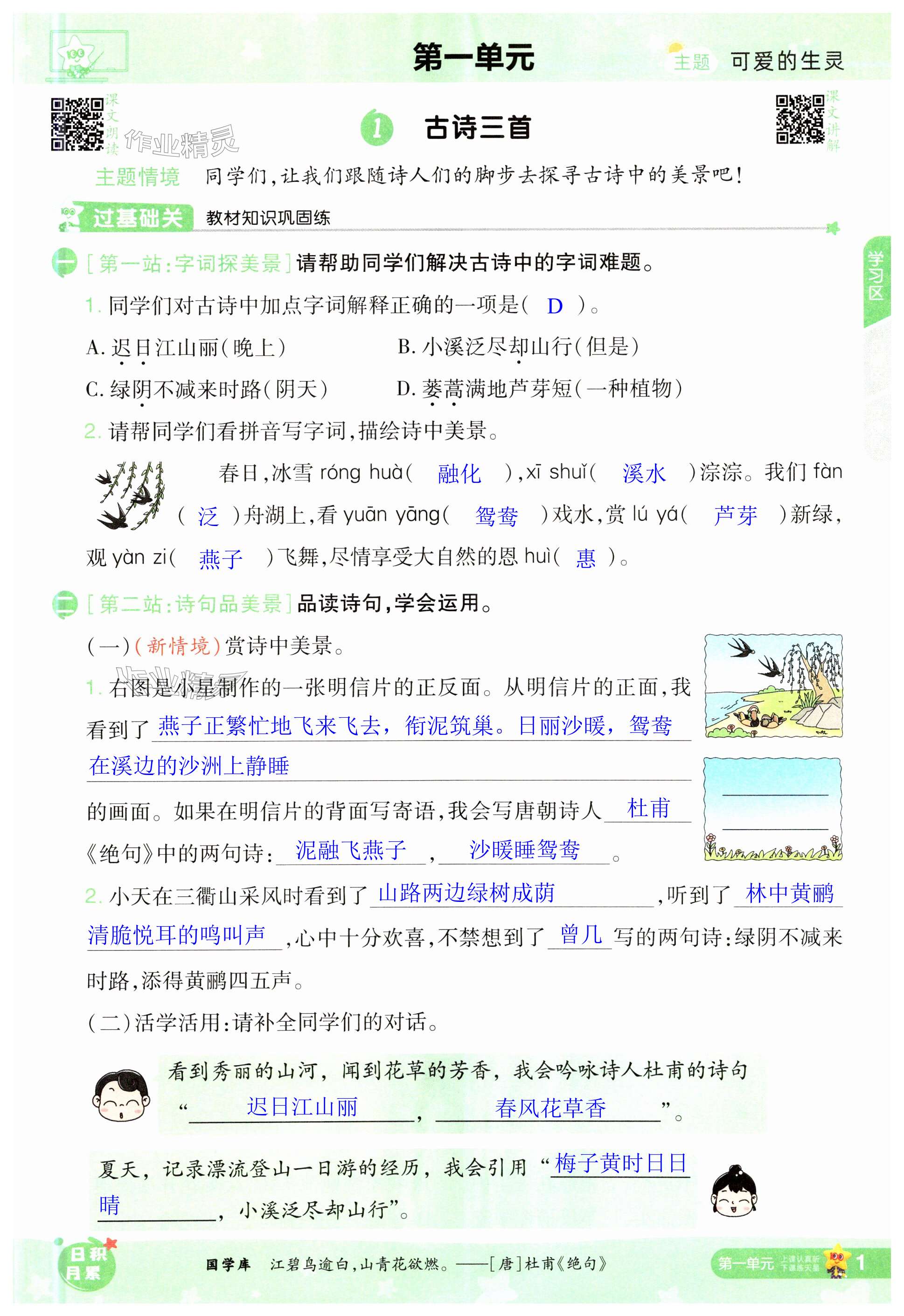 注:目前有些书本章节名称可能整理的还不是很完善,但都是按照顺序排列的,请同学们按照顺序仔细查找。练习册 2025年一遍过三年级语文下册人教版 答案主要是用来给同学们做完题方便对答案用的,请勿直接抄袭。