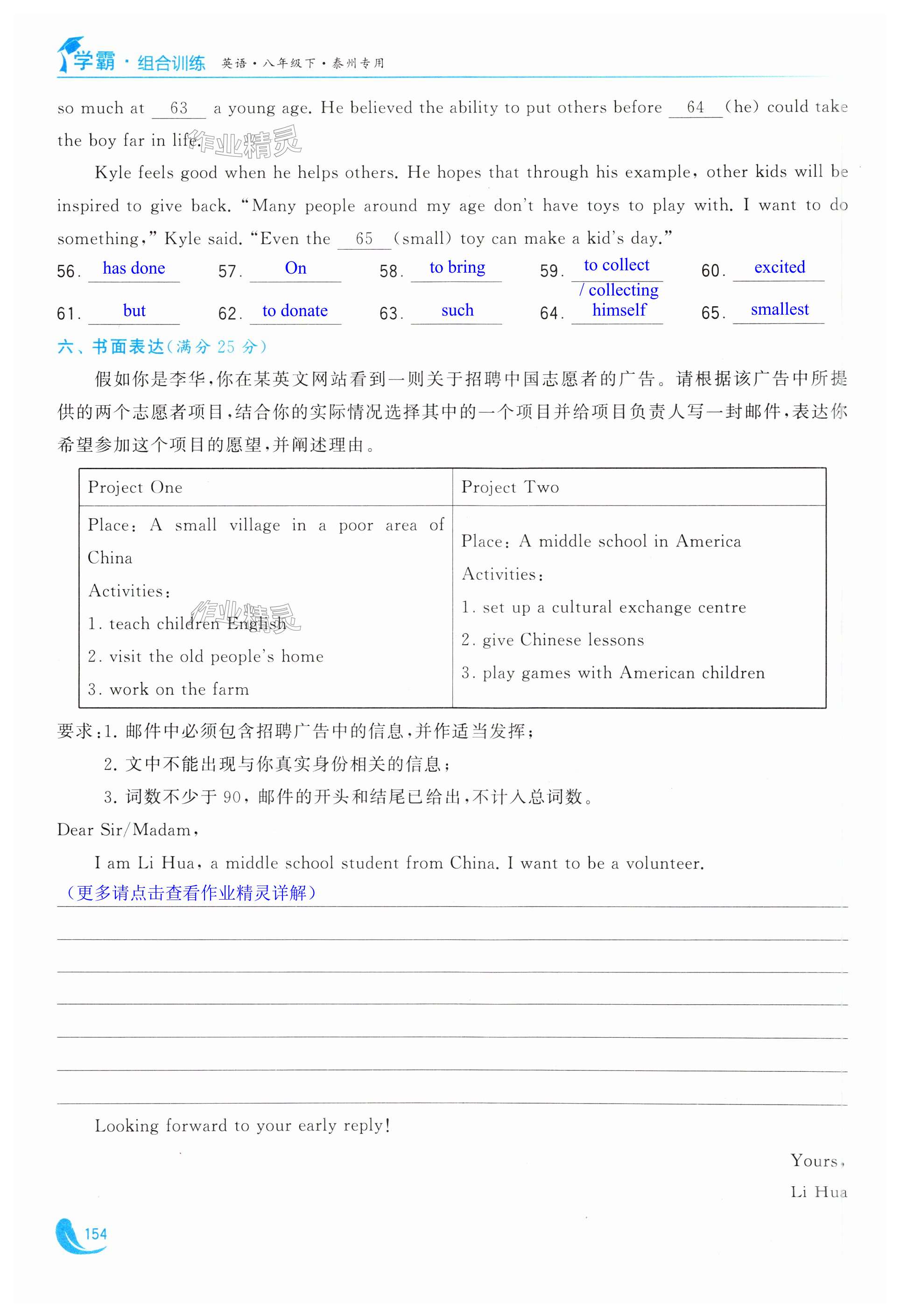 注:目前有些书本章节名称可能整理的还不是很完善,但都是按照顺序排列的,请同学们按照顺序仔细查找。练习册 2025年学霸组合训练八年级英语下册译林版泰州专版 答案主要是用来给同学们做完题方便对答案用的,请勿直接抄袭。