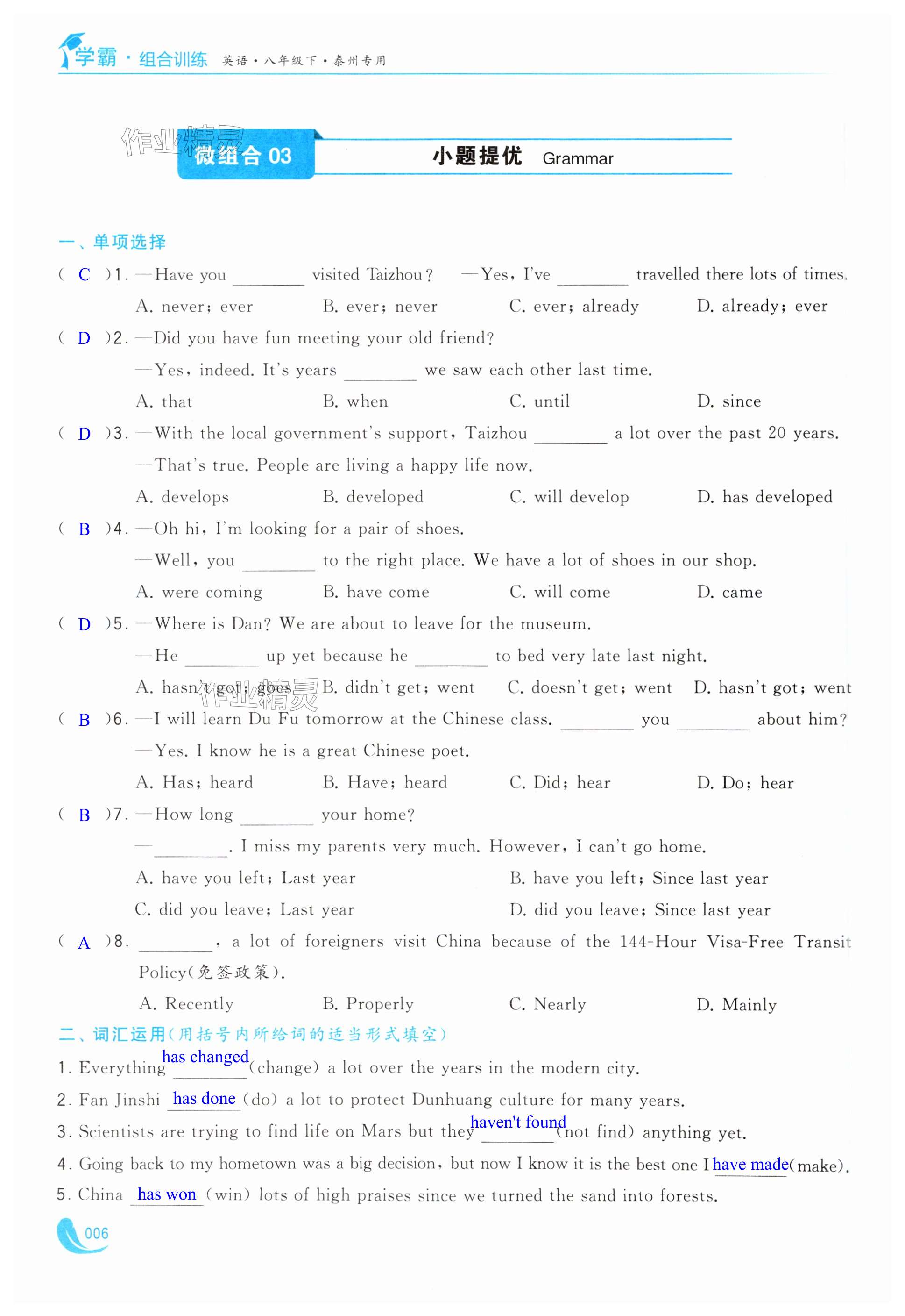 注:目前有些书本章节名称可能整理的还不是很完善,但都是按照顺序排列的,请同学们按照顺序仔细查找。练习册 2025年学霸组合训练八年级英语下册译林版泰州专版 答案主要是用来给同学们做完题方便对答案用的,请勿直接抄袭。