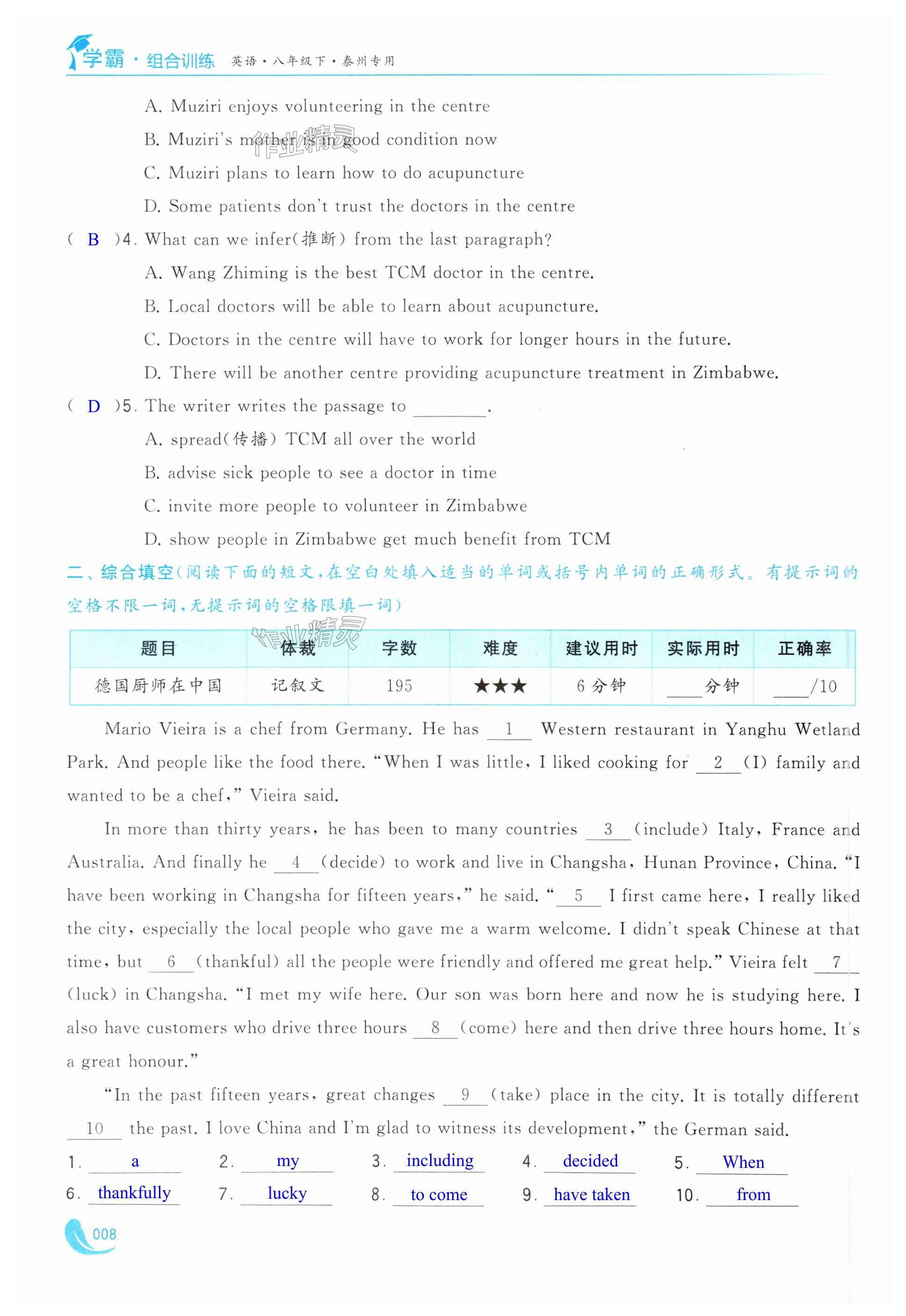 注:目前有些书本章节名称可能整理的还不是很完善,但都是按照顺序排列的,请同学们按照顺序仔细查找。练习册 2025年学霸组合训练八年级英语下册译林版泰州专版 答案主要是用来给同学们做完题方便对答案用的,请勿直接抄袭。