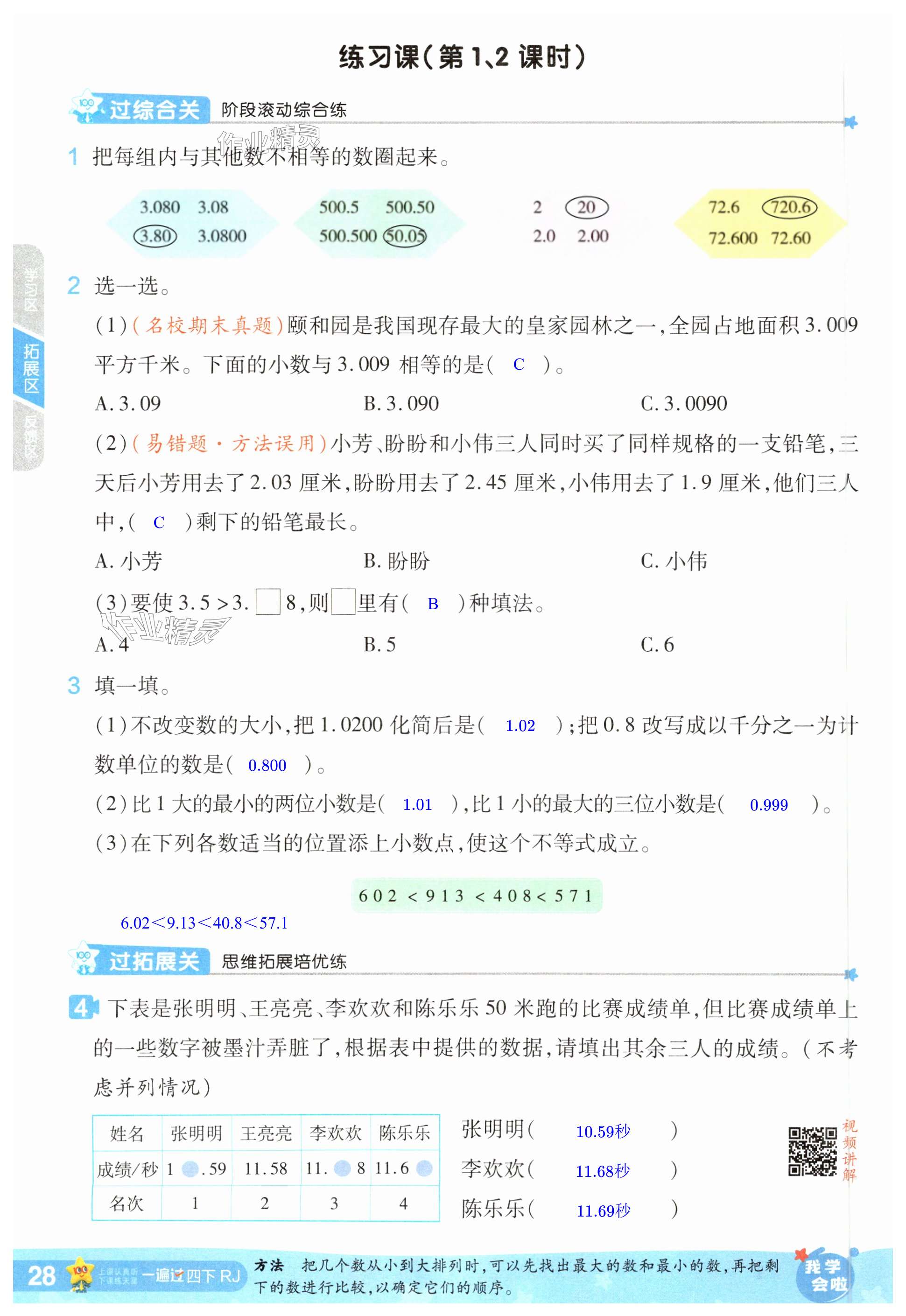 注:目前有些书本章节名称可能整理的还不是很完善,但都是按照顺序排列的,请同学们按照顺序仔细查找。练习册 2025年一遍过四年级小学数学下册人教版 答案主要是用来给同学们做完题方便对答案用的,请勿直接抄袭。