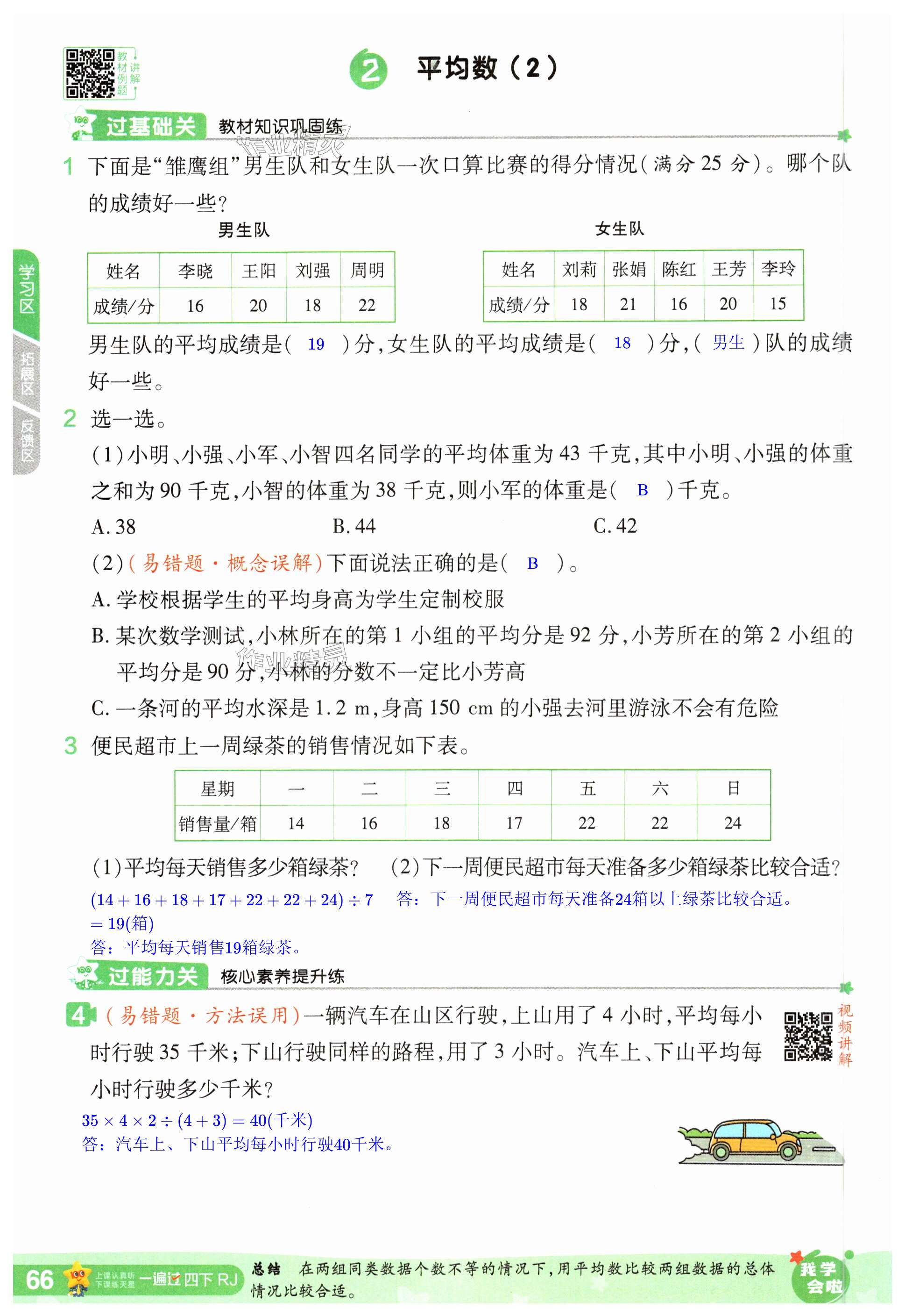 注:目前有些书本章节名称可能整理的还不是很完善,但都是按照顺序排列的,请同学们按照顺序仔细查找。练习册 2025年一遍过四年级小学数学下册人教版 答案主要是用来给同学们做完题方便对答案用的,请勿直接抄袭。