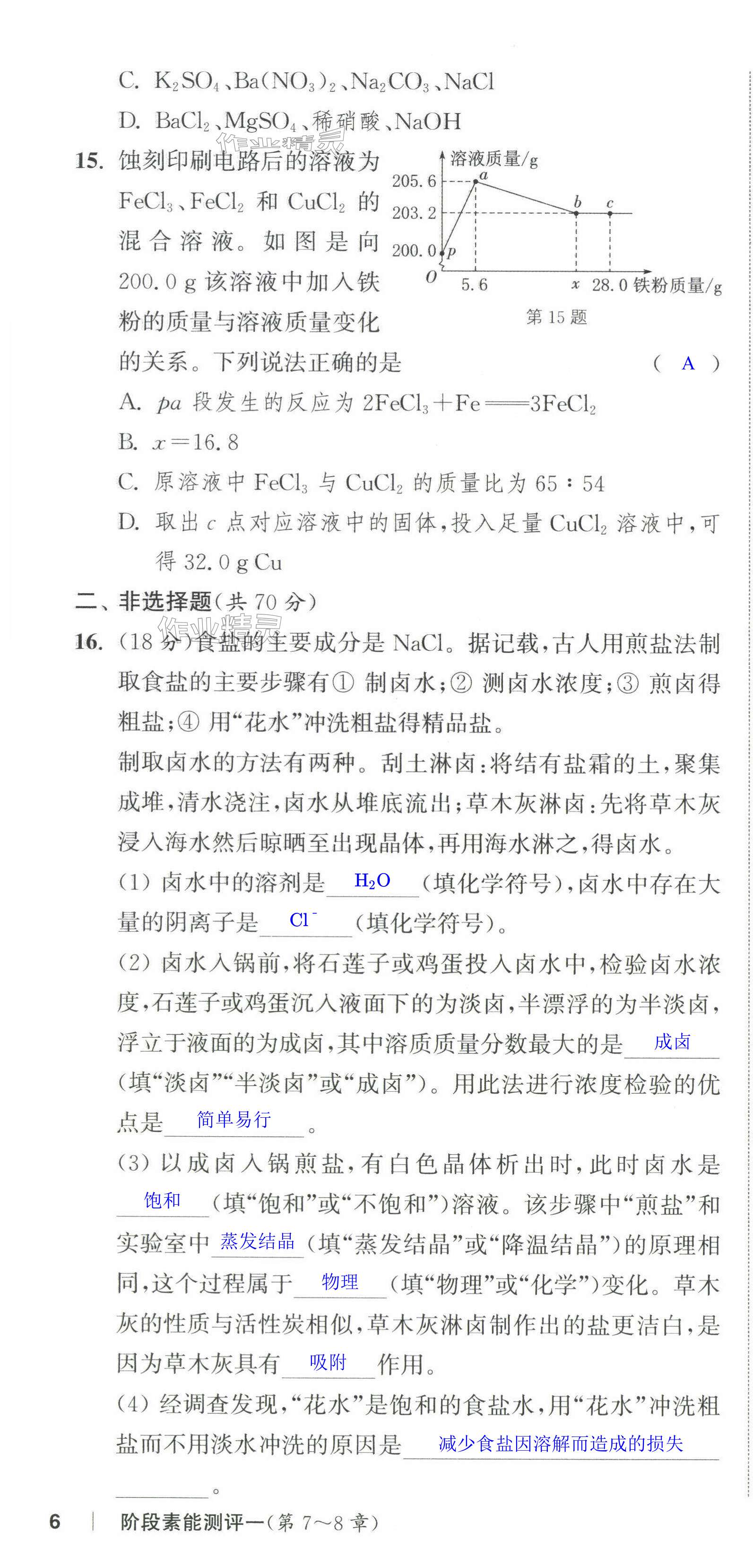 注:目前有些书本章节名称可能整理的还不是很完善,但都是按照顺序排列的,请同学们按照顺序仔细查找。练习册 2025年通成学典课时作业本九年级化学下册沪教版江苏专版 答案主要是用来给同学们做完题方便对答案用的,请勿直接抄袭。