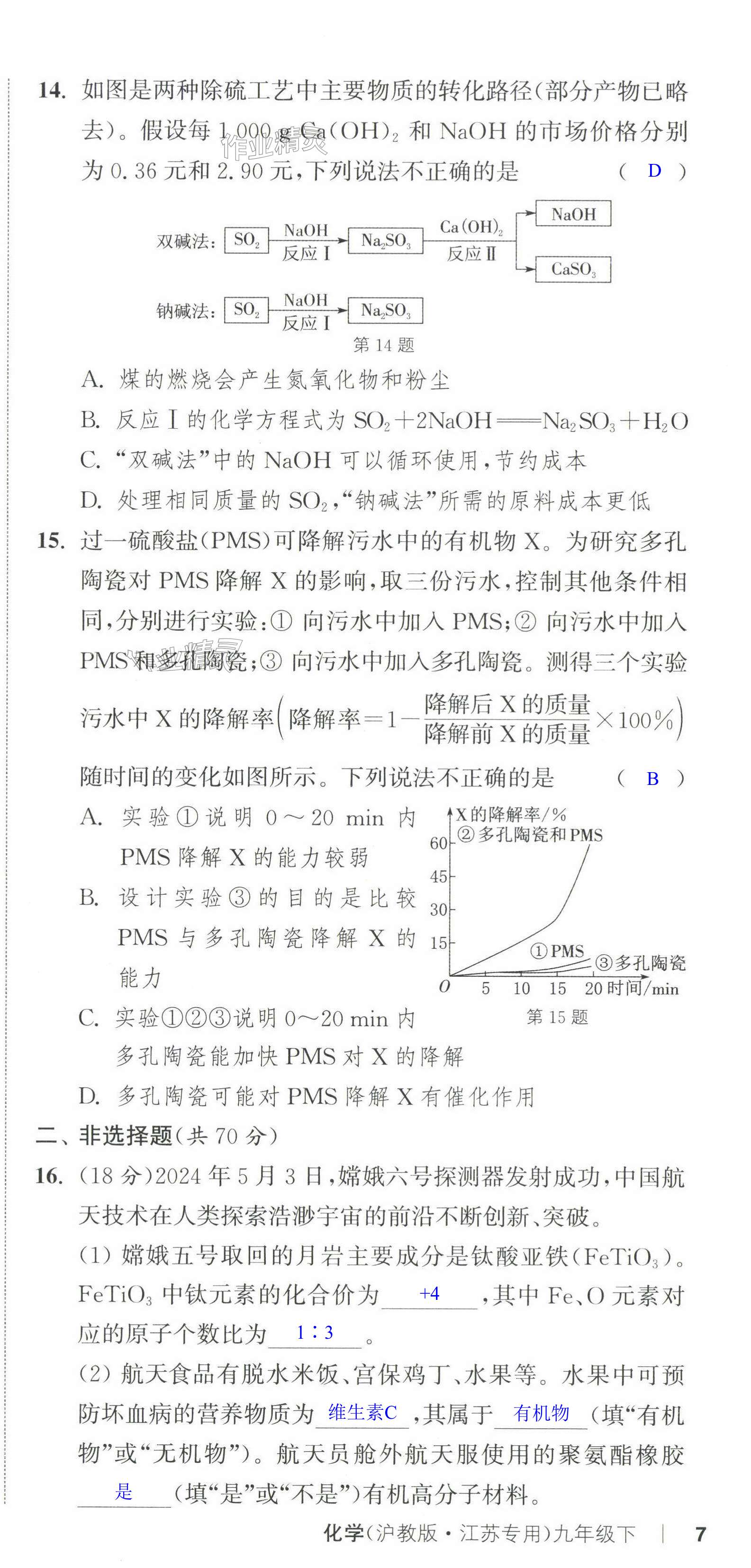 注:目前有些书本章节名称可能整理的还不是很完善,但都是按照顺序排列的,请同学们按照顺序仔细查找。练习册 2025年通成学典课时作业本九年级化学下册沪教版江苏专版 答案主要是用来给同学们做完题方便对答案用的,请勿直接抄袭。
