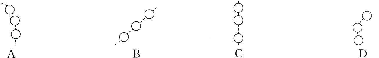 11.(2024·常州模拟)有一架飞机沿水平向右做匀速直线运动,每隔1 s从飞机上释放一只小球,当三只小球落下但均未落至地面时,若不计空气阻力,则这三只小球在空中的排列情况应是 ( )