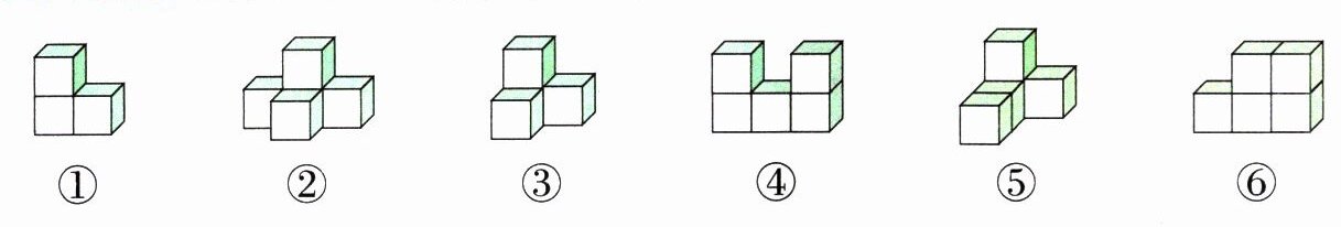 (1)从前面看是的有( );从左面看,①和( )是相同的。(填序号)