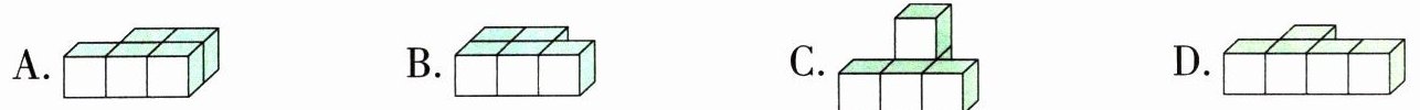 3. 用4个同样的小正方体搭成,如果再增加1个小正方体,要使从左面看到的图形不变,那么下面的摆法中错误的是( )。