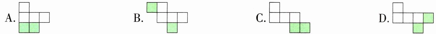 补画两个小正方形,使它能折成一个正方体。下面四种画法中,不正确的是( )。