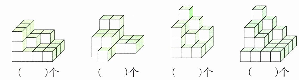 1. 你能数出下面的几何体中各有多少个小正方体吗?