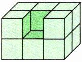 3. (珠海期末真题)用12个同样大小的小正方体拼成一个长方体,从中拿走一个小正方体后(如图),把剩下部分的表面都涂上颜色,剩下的小正方体中,三面涂色的有( )个。