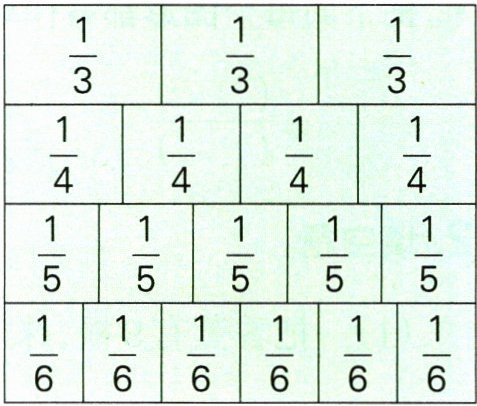 $\frac{1}{3}$ $\frac{1}{5}$ $\frac{1}{6}$ $\frac{1}{4}$ $\frac{1}{9}$