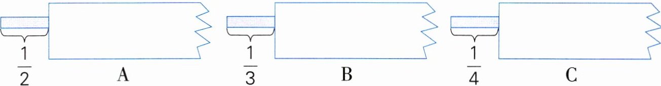 5. 为庆祝国庆节的到来,同学们要用彩带装饰教室。下面三条彩带都被遮住了一部分,露出部分的长度相等。最长的彩带是哪一条?为什么?