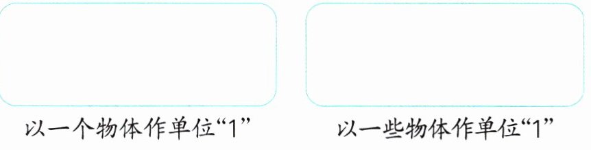 3. 任选下面一个分数,分别以一个和一些物体作为单位“1”,在框里画图表示出来。