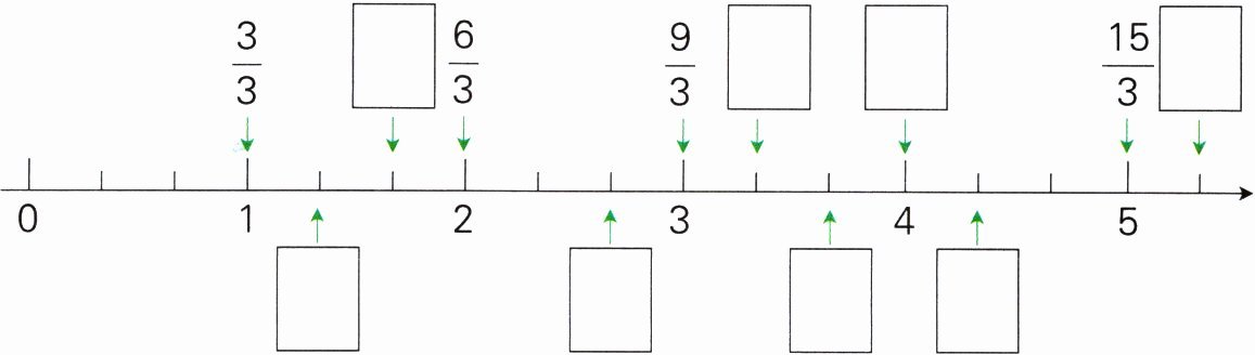 3. (易错题)在直线上面的框里填上适当的假分数,下面的框里填上适当的带分数。