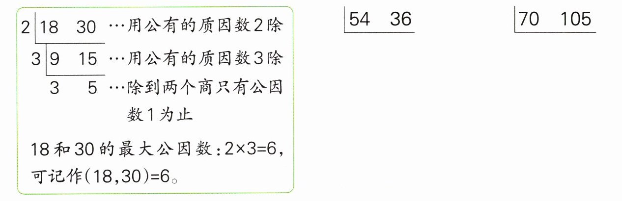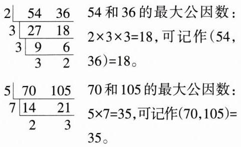 5. [新趋势·算理探究]下面是应用短除法分解质因数来求两个数的最大公因数的过程,请你照样子求出右面两组数的最大公因数。