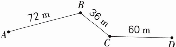 5. 15 解析:因为相邻两盏花灯间的距离都相等,所以间距的米数一定是72、36和60的公因数。要求至少要安装多少盏花灯,就要先求72、36和60的最大公因数,即为12。除A、B、C、D四个点外,AB段上至少还要安装72÷12 - 1 = 5(盏),BC段上至少还要安装36÷12 - 1 = 2(盏),CD段上至少还要安装60÷12 - 1 = 4(盏),再加上这四个点上的4盏花灯即为所求,至少要安装5 + 2 + 4 + 4 = 15(盏)花灯。