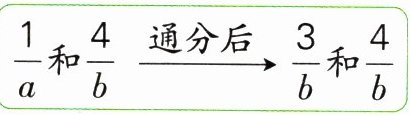 解析:由通分的结果可知 $\frac{1}{a}=\frac{1\times3}{a\times3}=\frac{3}{b}$,所以 $b = 3a$,将 $b = 3a$ 代入 $b - a = 14$ 即可求得 $a = 7$,所以 $b = 3a = 3×7 = 21$。原来两个分数分别是 $\frac{1}{7}$ 和 $\frac{4}{21}$。