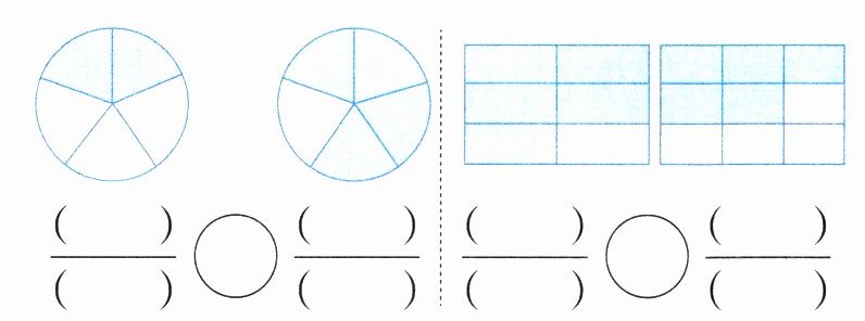 1. 比一比,填一填。(每个图形都看作单位“1”)