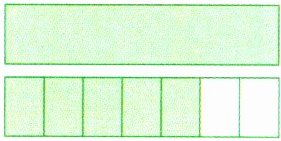(1) 把一个长方形看作单位“1”,右图涂色部分的大小可以用分数( )表示,它的分数单位是( ),再添上( )个这样的分数单位后就是最小的质数。