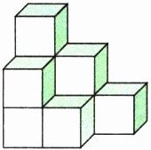 3. 老师用9个同样的正方体粉笔盒摆成一个几何体(如图)。若粉笔盒每个面的面积都是1 dm²,则这个几何体从前面看到的图形的面积是( )dm²,从上面看到的图形的面积是( )dm²。