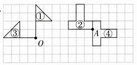 (2)画出图形②先绕点A顺时针旋转90°,再向下平移2格后得到的图形④。