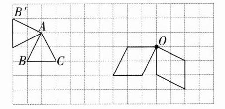 (2)在平行四边形中任选一个顶点标记为O,然后画出平行四边形绕点O逆时针旋转90°后的图形。
