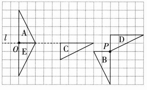 (2)画出三角形B先绕点P逆时针旋转90°,再向上平移2格后得到的图形D。