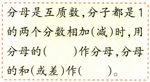 $\frac{5}{6}$@@$\frac{13}{42}$@@$\frac{18}{65}$@@积@@分子@@$\frac{1}{30}$@@$\frac{1}{20}$@@$\frac{3}{88}$@@$\frac{1}{3}+\frac{1}{4}=\frac{7}{12}$ $\frac{1}{8}-\frac{1}{9}=\frac{1}{72}$(算式不唯一)